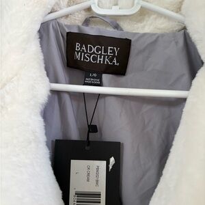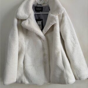 Badgley Mischka Yara Luxe Faux-Fur Coat size L color cream/white