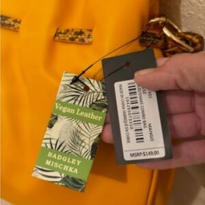 Badgley Mischka Yellow Tote With Snake Skin Print Detail MSRP $149