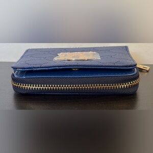 Badgley Mischka Zip Around Wallet Electric Blue Monogram Vegan Leather NWT Glam