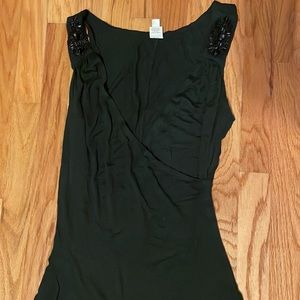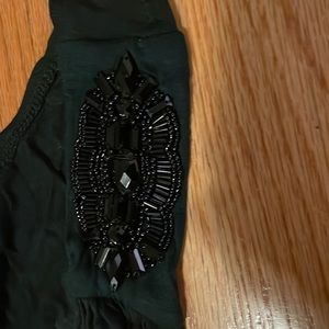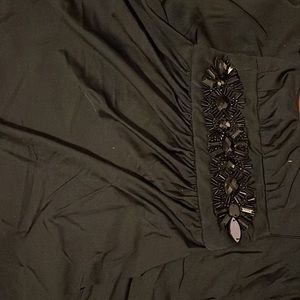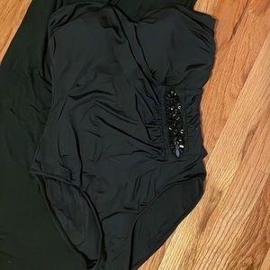 Badgley Mischka black one piece bathing suit with beading. Ruched. Size 6 suit, size small coverup. Excellent condition!