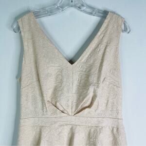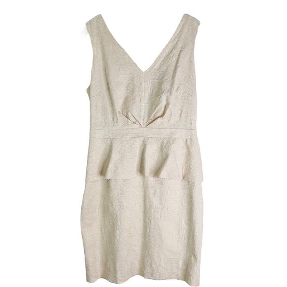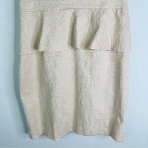 Badgley Mischka cream tan floral peplum sheath midi evening wedding dress 12