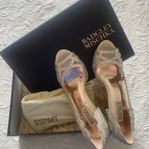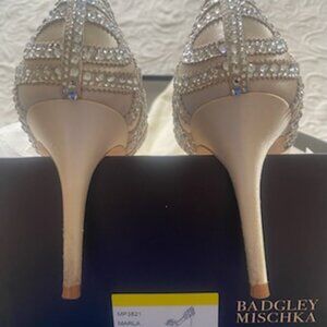 Badgley Mischka festive heels, size 7.5, color is off-white with sequins.