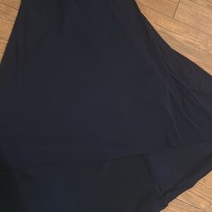 Dark blue color. 3/4 sleeves with one bow on right shoulder.
