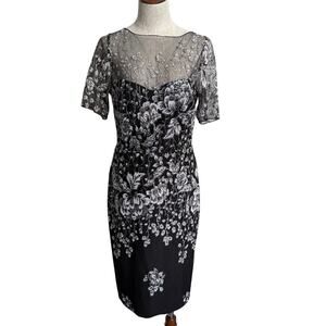 Badgley Mischka floral unconventional lace sheath dress 14 mother of bride LBD