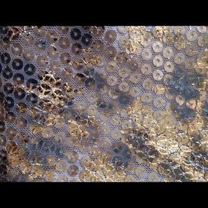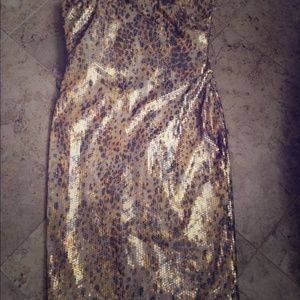 Leopard pattern with gold sequin overlay. Strapless - just above knee length