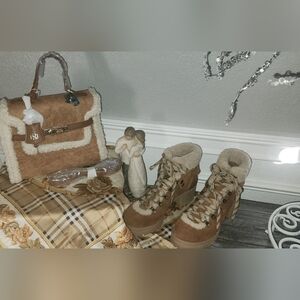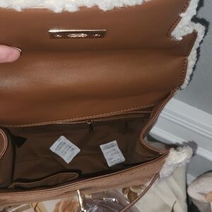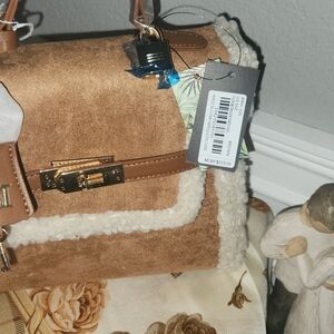 awesome Badgley Mischka sherpa and swade bag with lock and key. comes with crossbody strap