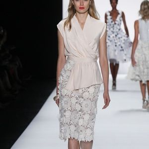 Pencil skirt with some 3D flowers and scallop hem, 28" long to longest scallop. Picture from the runway is the skirt without lining, but this one has lining. Only worn a couple times, in great condition.