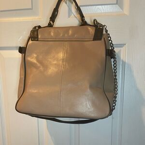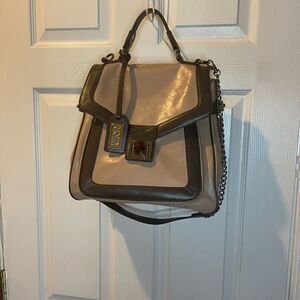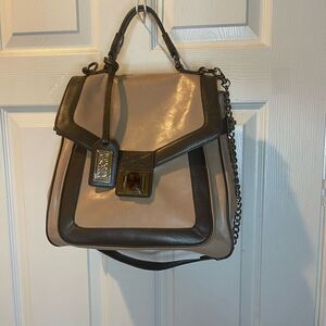 Badgley Mischka leather tan and brown satchel/ shoulder bag gold tone hardwares