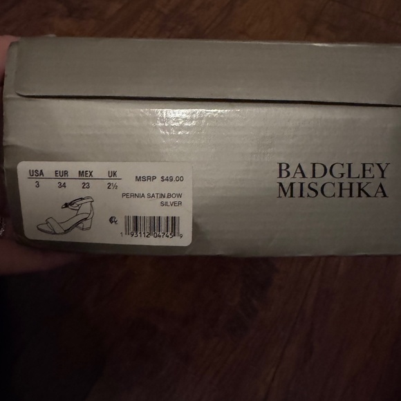 Badgley Mischka silver pernia bow heels for big girls, size 3