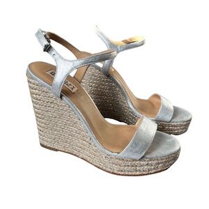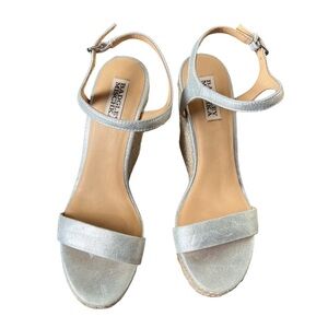 Badgley Mischka silver wedge espadrille sandals sz 9