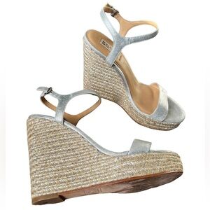 Badgley Mischka silver wedge espadrille sandals