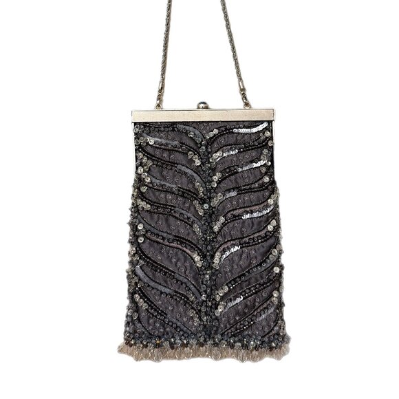 Badgley Mischka vintage grey mini beaded embellished evening bag