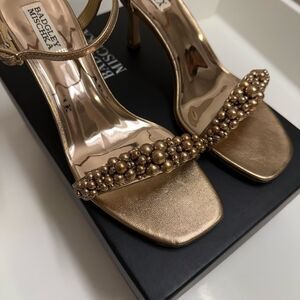 Badgley Mischka Caitlyn Pearly Ankle-Strap Sandals, Bronze, Size 7.5, $235