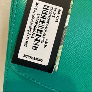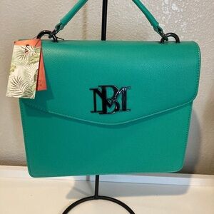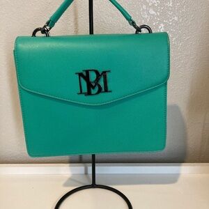 A shining logo stands out against a crossbody bag topped with convertible straps that can be worn slung on your arm or across your body for versatility.