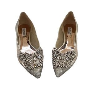 Badgley Mischka Quinn Rhinestone Embellished Evening Flat Ivory Satin Size 8