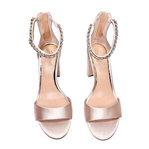 Badgley Mischka Sandals Size 7.5 Louise Peep-toe Block Heel Rose Embellished
