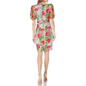Badgley Mischka Size 2 Palm Floral Collared Sheath Dress Green Pink Knee Length