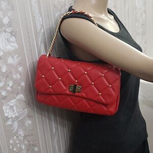 Badgley Mischka Studs Embossed Red Crossbody Shoulder Embossed Bag NWT