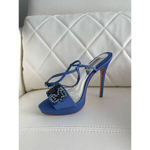 Badgley Mischka blue satin embellished beaded heels, size 7.5