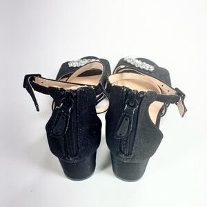 Badgley Mischka pernia gems formal black low strappy heel with rhinestone size 5. Perfect for a holiday wedding, flower girl, or mother of the bride. New Year’s Eve? Little black dress? 2” heel.