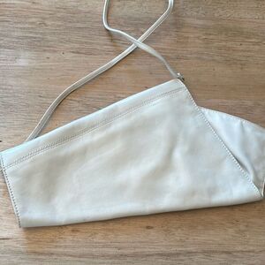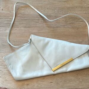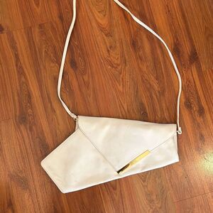 Badgley Mischka white leather interesting shape clutch with removable strap