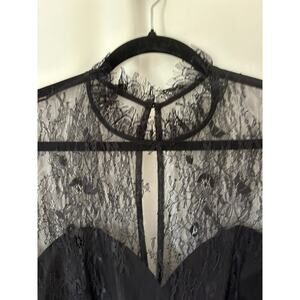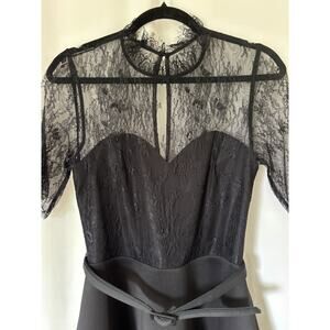 Badgley Mishka Dress 4 Black Fit & Flare Lace Knee Mock Elegant Cocktail Holiday