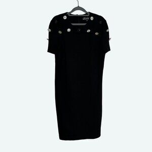 Badgley Mishka Studio Little Black Shift Dress Rhinestone Button Details Medium