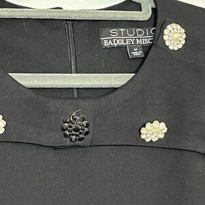 Badgley Mishka Studio Little Black Shift Dress Rhinestone Button Details Size Medium