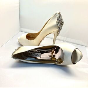 Badgley Mischka Kiara Embellished Ivory Peep-Toe Evening Pumps Size 6.5