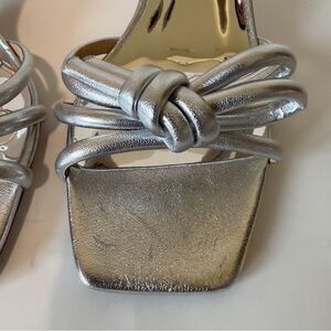 Badgley Mischka Loyalty Silver Knotted Ankle Strap Square Toe Neutral Sandals Size 6.5.