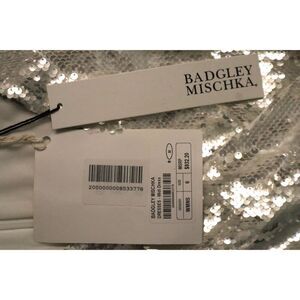 Badgley Mischka SC2538 Women's Sz 6 White Sequined Cocktail Midi Dress