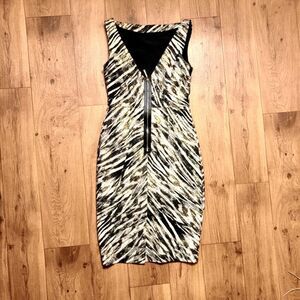 Badgley Mischka Collection Zebra Print Dress Gold Black Size 2