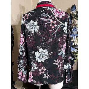 Badgley Mischka Floral Button Up Blouse Bell Sleeves Size 10
