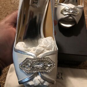 Badgley Mischka Pumps Womens 9 Dyeable Formslag Ivory Satin Bridal Cotillion