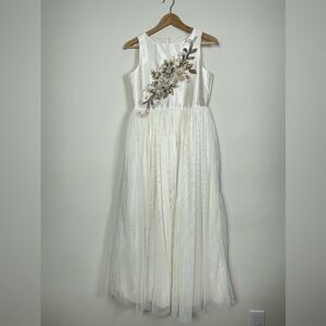 Badgley Mischka Ivory Floral Appliqué Flower Girl Dress