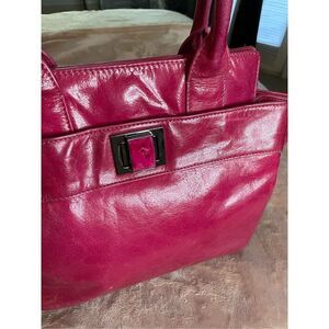 Preowned Badgley Mischka bag in a vibrant pink color, measurements in photos