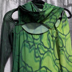 Badinka Acid Rain Green Mesh Hooded Dress Medium