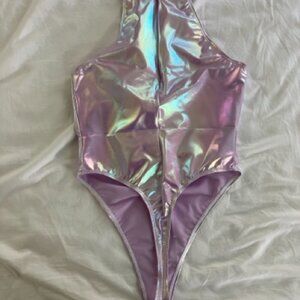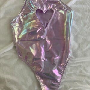 Are you the one they call ”heartless”? You just found the perfect bodysuit. Step into the spotlight with this jaw-dropping bodysuit, crafted from stretchy holographic fabric in subtle pink hues. This piece features a daring heart-shaped cutout front and a convenient snap closure, hugging your curves with a flawless, skin-tight fit. Unapologetically bold and irresistibly fierce, this piece is your ticket to turning heads and owning every room you walk into.