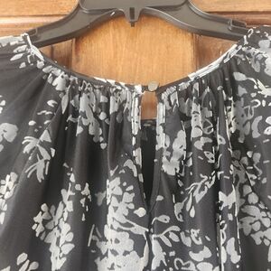 Badlgley Mischka Black and White Ruffled Puff Sleeve Blouse Sz M