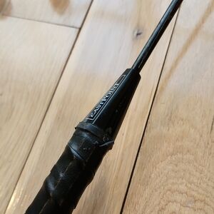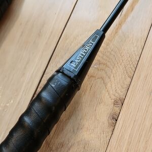 Enjoy a fun game with this badminton set featuring sleek black rackets. Perfect for home games.