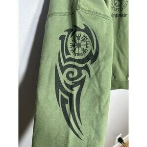 The Badolina Denmark Vegvisir Men's sweater is a stylish and rugged pullover perfect for outdoor activities like walking and hiking. Made of cotton, this green sweater features a Viking theme, ideal for the winter, fall, and spring seasons. The regular fit in size M is both comfortable and fashionable, making it a versatile addition to any man's wardrobe. Ideal for those who appreciate a mix of Viking and grunge styles in their clothing choices.
