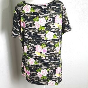 * Green & black camouflage top with pink & yellow roses