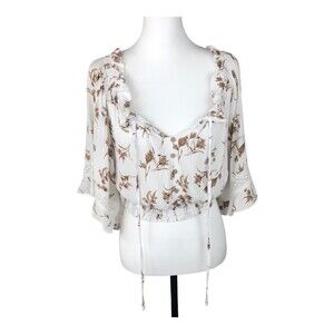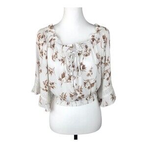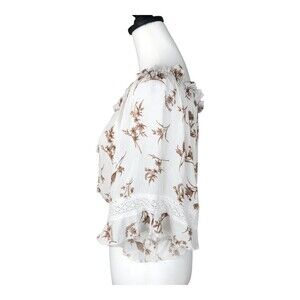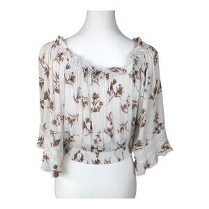 BaeVely Women's Ivory Floral Boho Off the Shoulder Cropped Top S
