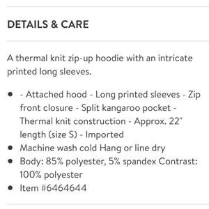 Baea Blue Floral Balloon Sleeve Thermal Knit Full Zip Hoodie Size Large NWT