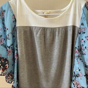 Baea color block flutter sleeve blouse small