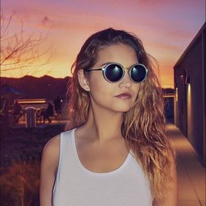 Round matte frames. These are the baeby of the family bringing out all the fun colors & your inner summer child! 100% UV protection. Metal arms add a sophisticated detail. Also available in Green, Purple, and Salmon.