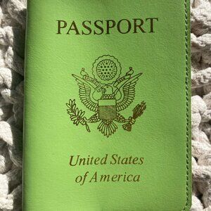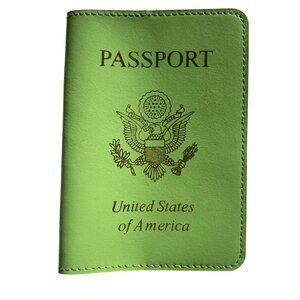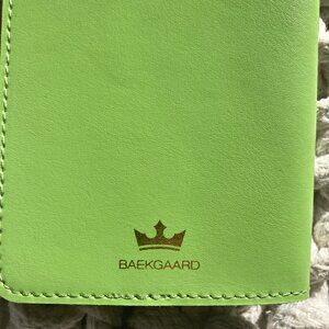 Baekgaard Green Leather Passport Holder Case Cover Gold Print Pink Interior