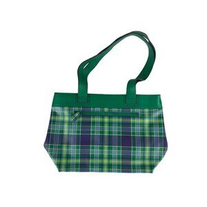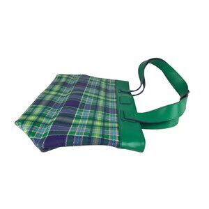 Baekgaard Womens Purple Green Yellow Plaid Shoulder Bag Top Handle Size Medium