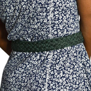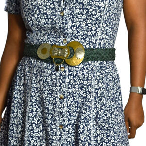 Baer SF Braided Belt Green Waxed Embellished Mixed Metals Discs Artsy Handmade