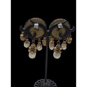 Baer SF Post Earrings With Faux Pearls & Dangling Beads Statement Vintage